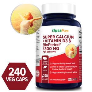 Super Calcium 1,300mg with Vitamin D3 and Bioperine 240 Veggie Caps ( Non-GMO & Soy-Free )