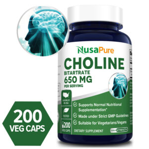 Choline Bitartrate 650mg – 200 Veg Caps (100% Vegetarian, Non – GMO)