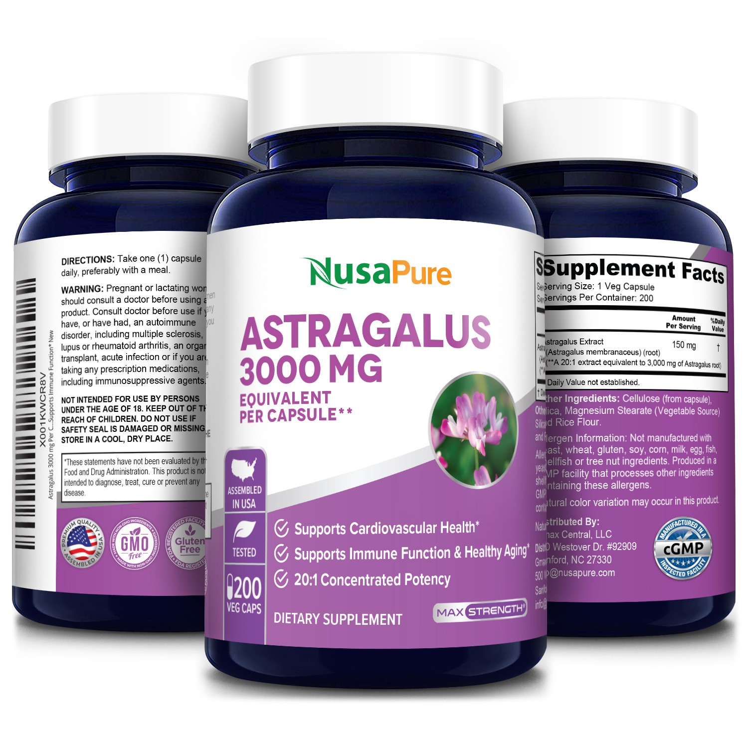 307 reviews for NusaPure Astragalus 20:1 Extract, 300 mg Equivalent to 6,000mg Per Serving, 200 Veggie Capsules, Non-GMO & Bioperine