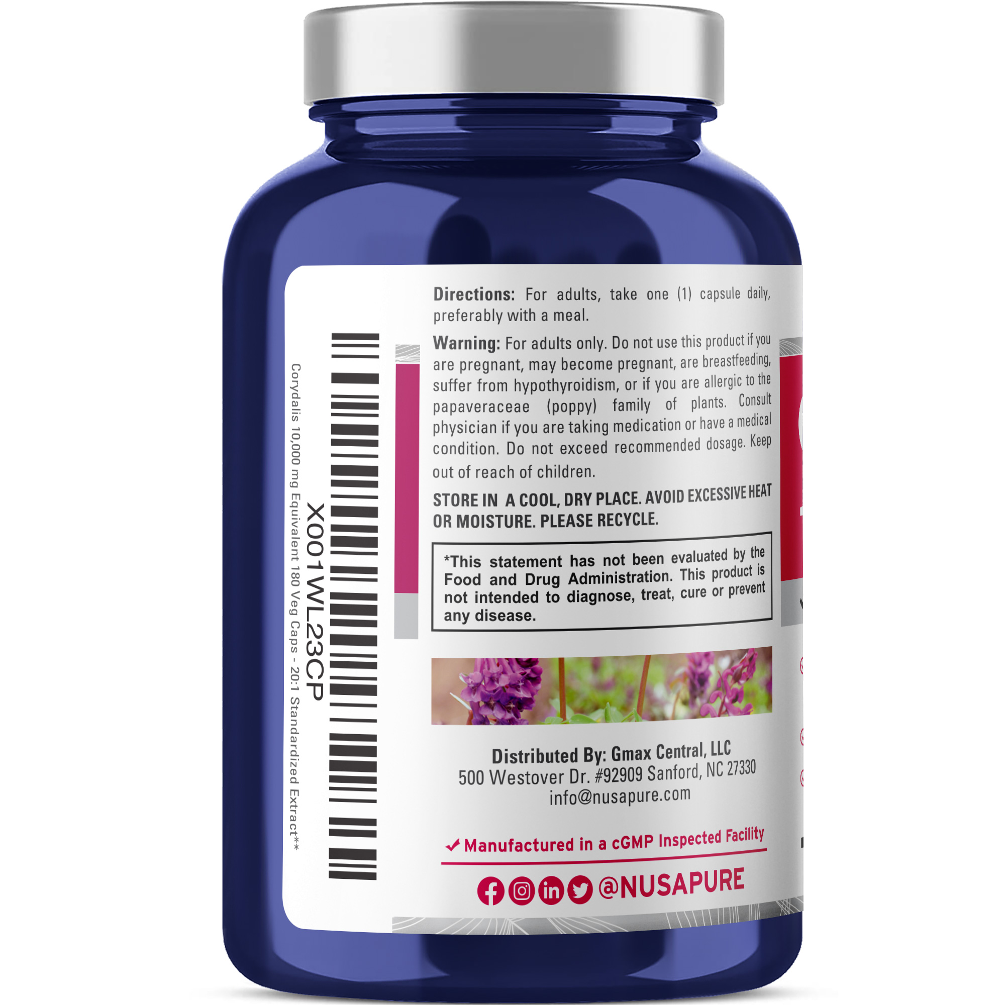 • Each capsule delivers the equivalence of 10,000 mg of Corydalis root powder. Serving size is 1 veggie capsule.