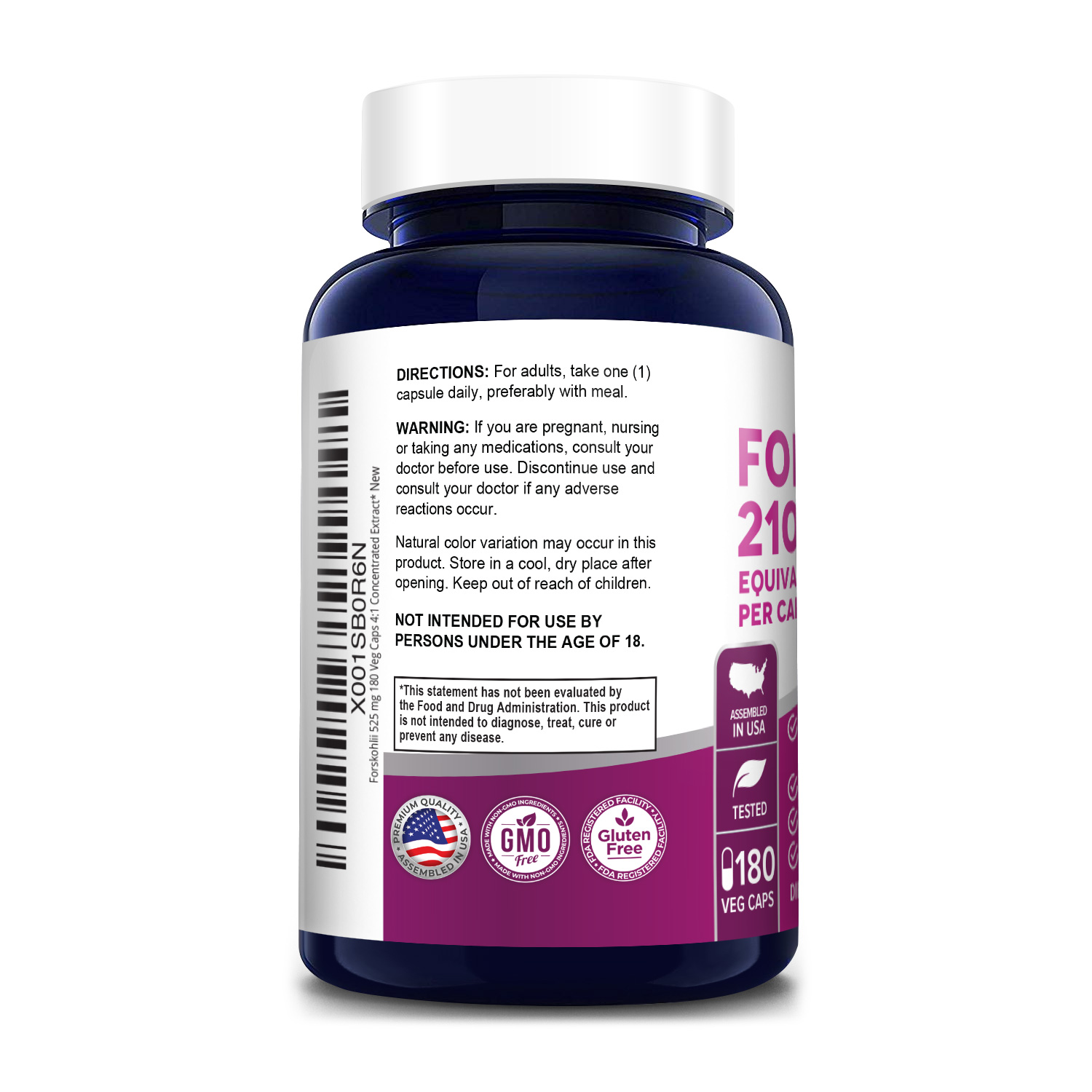 • Extra Strength: With Extract at 4:1 potency, one capsule provides the equivalence of 2,100 mg of Forskohlii. Serving size is 1 veggie capsule.