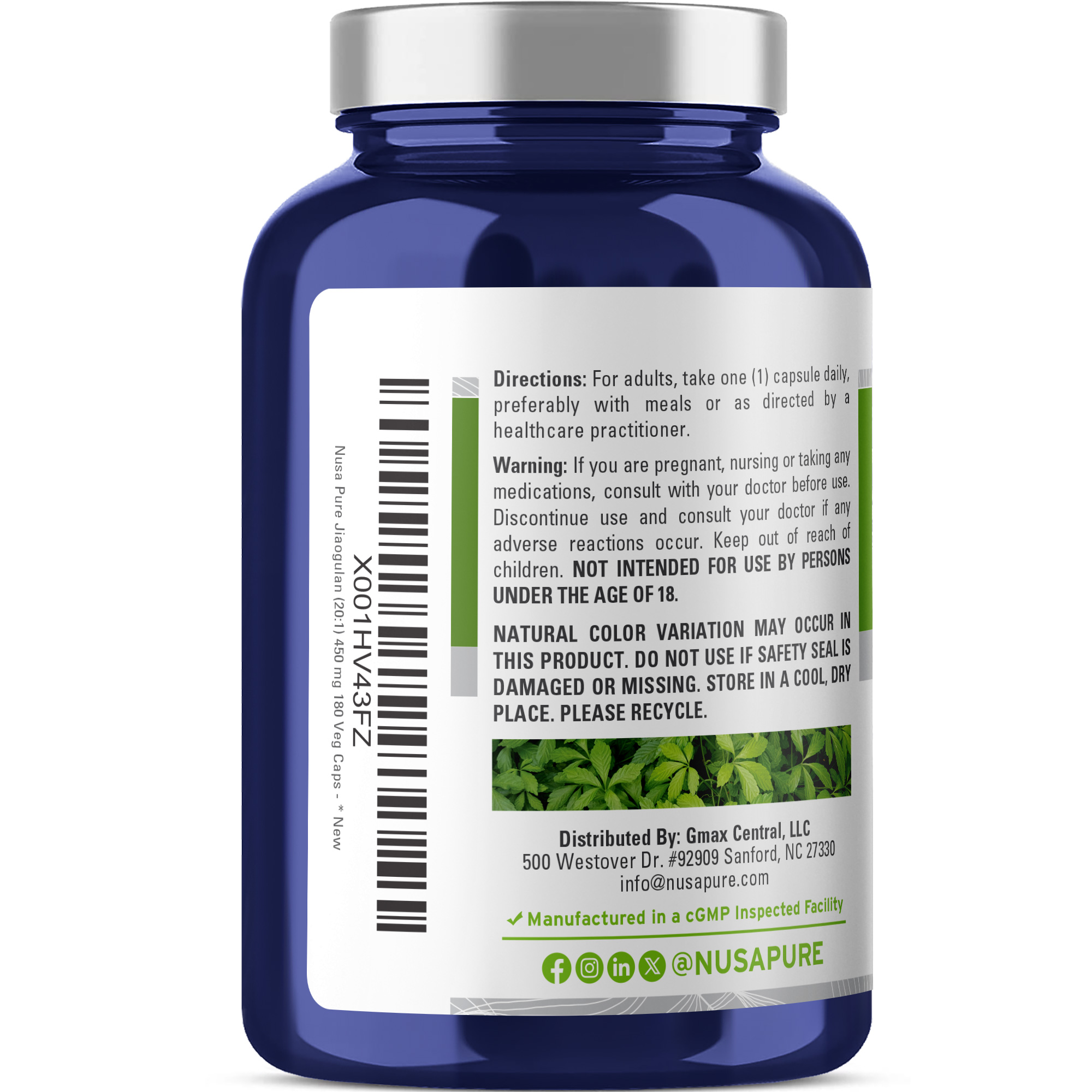 NusaPure Jiaogulan 20:1 Extract, 450 mg Equivalent to 9,000mg 180 Veggie Capsules (Vegetarian, Non-GMO, Vegan) Gynostemma Pentaphyllum