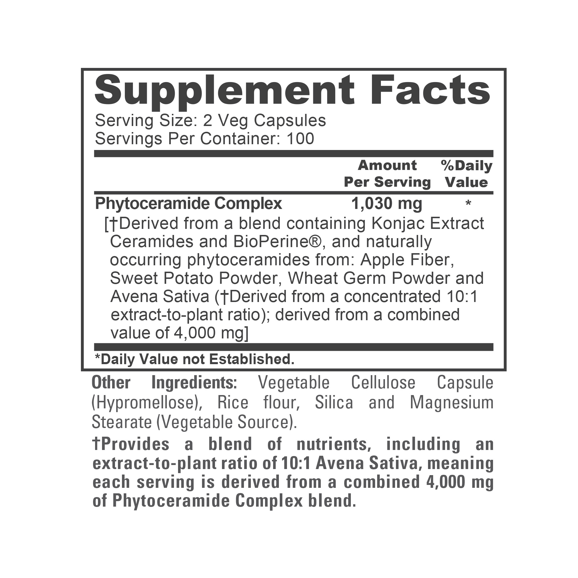 • High Absorption Phytoceramide Complex 4,000mg equivalent per serving. With Bioperine