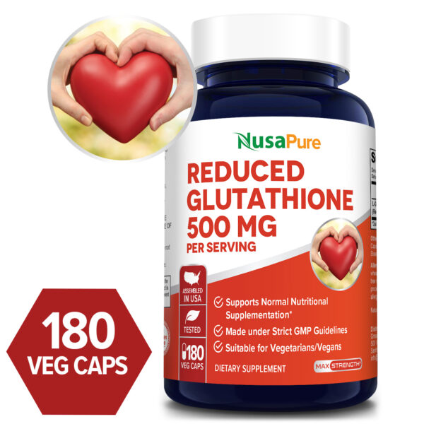 Reduced Glutathione 500mg – 180 Veg Caps (100% Vegetarian, Non – GMO)