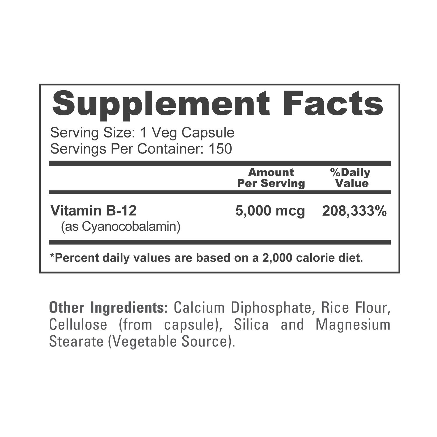 • Each capsule delivers 5000 MCG of Vitamin B-12
